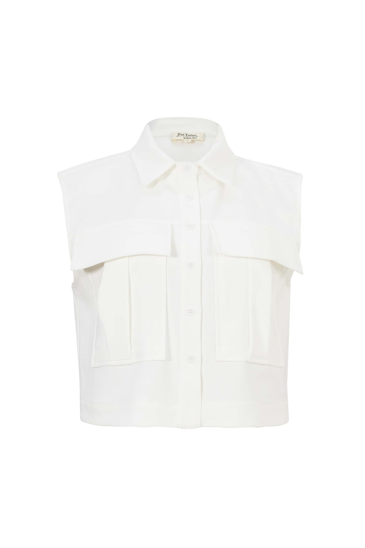 Esta blusa sin mangas redefine el chic contemporáneo con una silueta pulida y detalles utilitarios que aportan carácter. Su confección impecable integra un cuello clásico y una fila de botones al frente que añade un toque sofisticado, mientras que los bolsillos superiores de diseño estructurado ofrecen un guiño moderno y funcional.