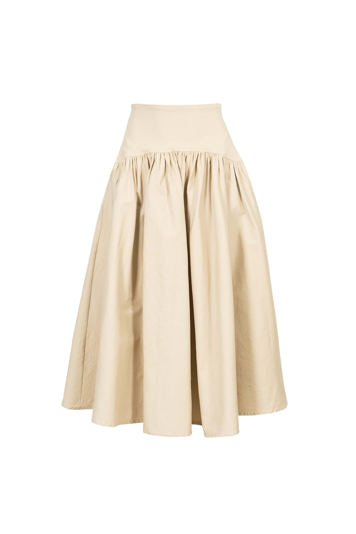 Falda midi con pretina ancha y vuelo amplio
