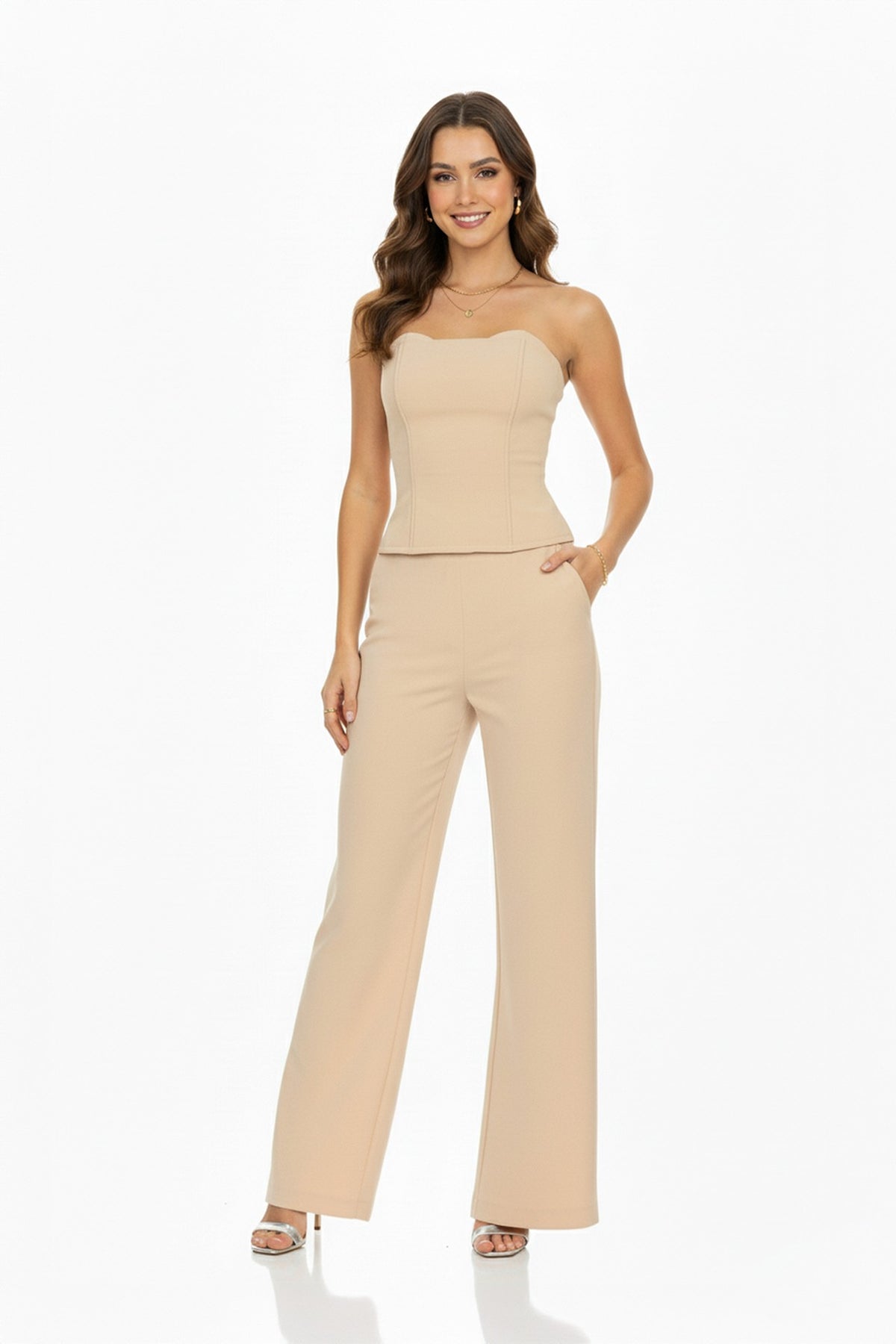 El top palabra de honor estructurado es una pieza icónica de elegancia contemporánea. Confeccionado en tejido de sastre de alta calidad, su diseño ceñido al cuerpo realza la silueta con precisión y sofisticación. El escote recto y limpio proyecta un aire minimalista y refinado, ideal para combinar con pantalones palazzo o faldas midi.