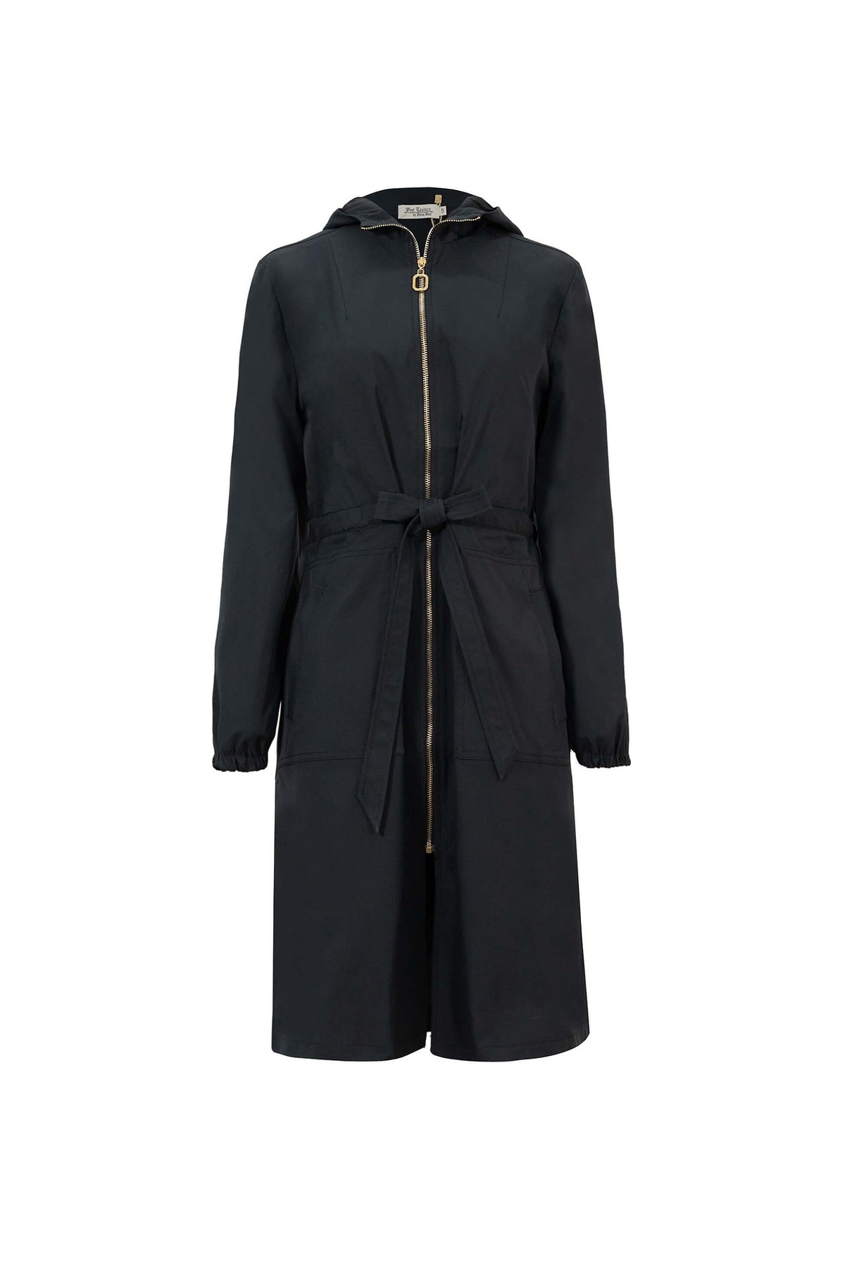 Su diseño incorpora una capucha elegante y un cierre metálico al frente que aporta un toque contemporáneo, mientras que el cinturón ajustable acentúa la cintura, logrando una silueta femenina y refinada. Los bolsillos frontales amplios combinan practicidad y diseño, haciendo de esta pieza una elección versátil para el día a día o viajes de ciudad.
