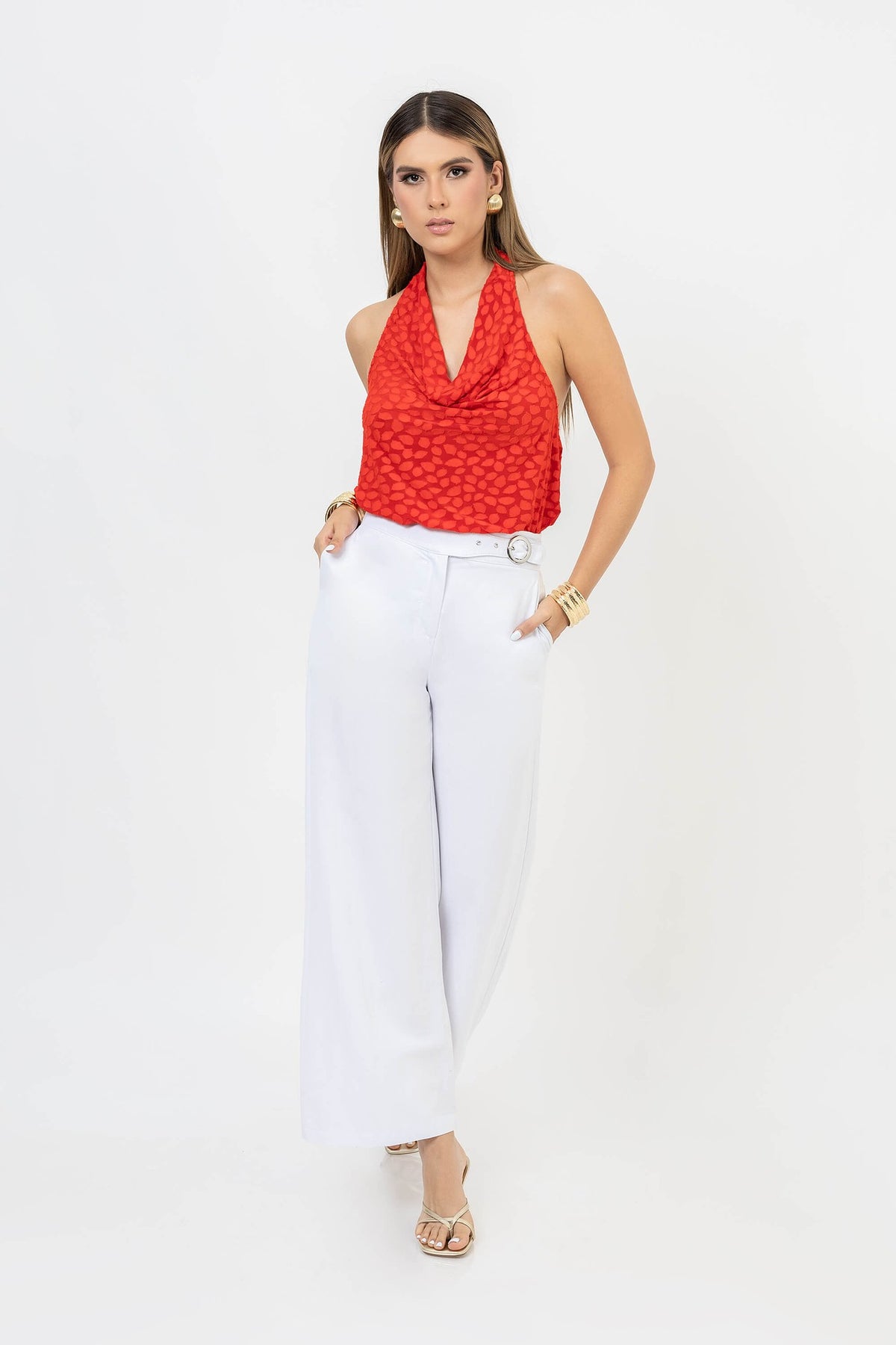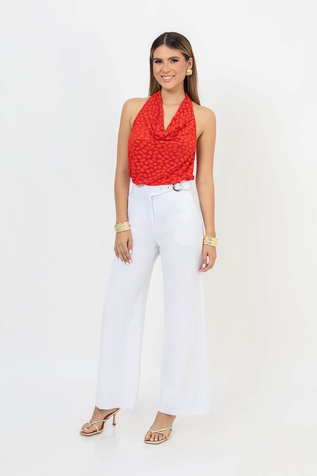La cintura alta proporciona un ajuste favorecedor y cómodo, ideal para combinar con blusas ligeras, tops estructurados o prendas de noche con mayor protagonismo. Su caída fluida permite libertad de movimiento sin perder definición, lo que lo convierte en una opción versátil tanto para looks formales como para propuestas más relajadas con acentos refinados.