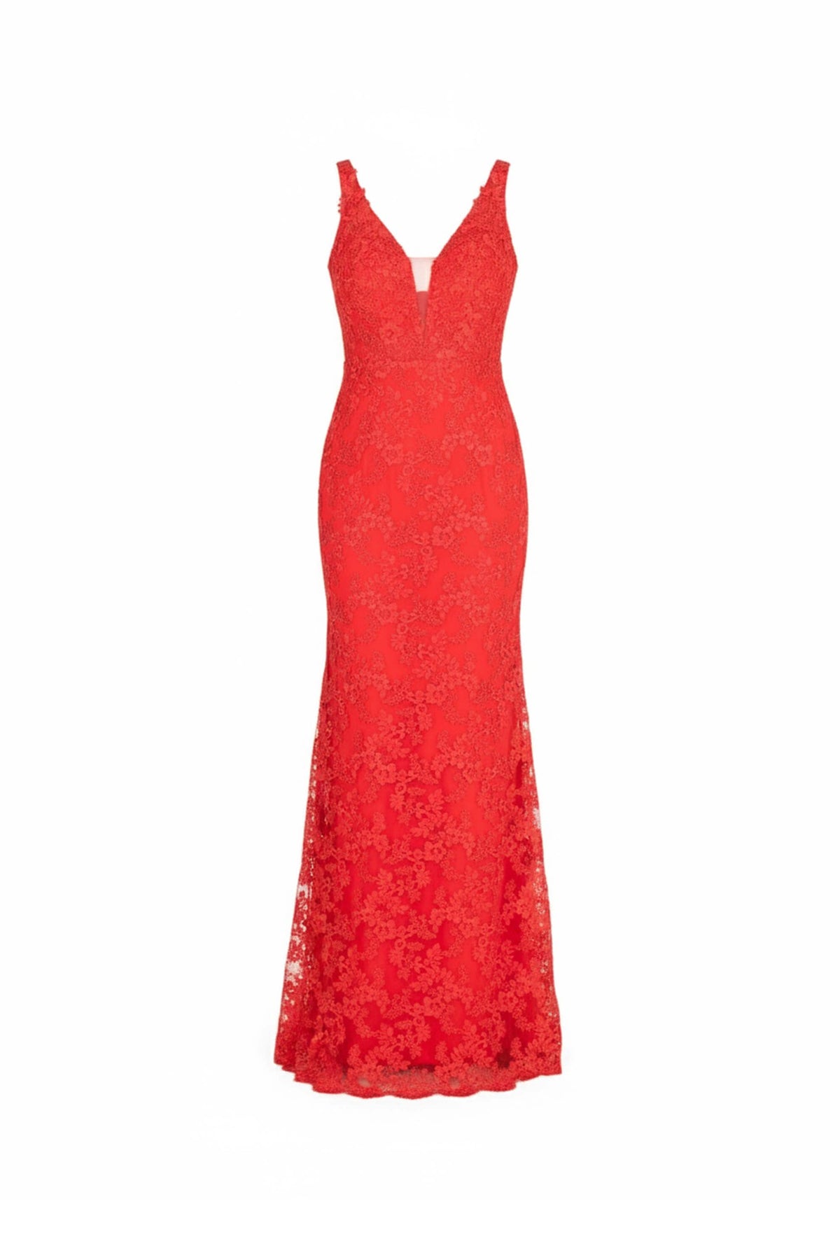 Este vestido largo rojo es la encarnación de la elegancia y el glamour. Confeccionado en delicado encaje floral, presenta un escote en V pronunciado que estiliza la figura y realza el porte. Su corte sirena abraza las curvas de forma favorecedora, mientras que la cola añade un dramatismo perfecto para una entrada inolvidable. Ideal para galas, bodas y eventos formales, este diseño combina sensualidad y sofisticación. El detalle del encaje trabajado sobre una base en tono vibrante crea un look de alto impacto visual, perfecto para boutiques que buscan ofrecer piezas exclusivas de lujo.