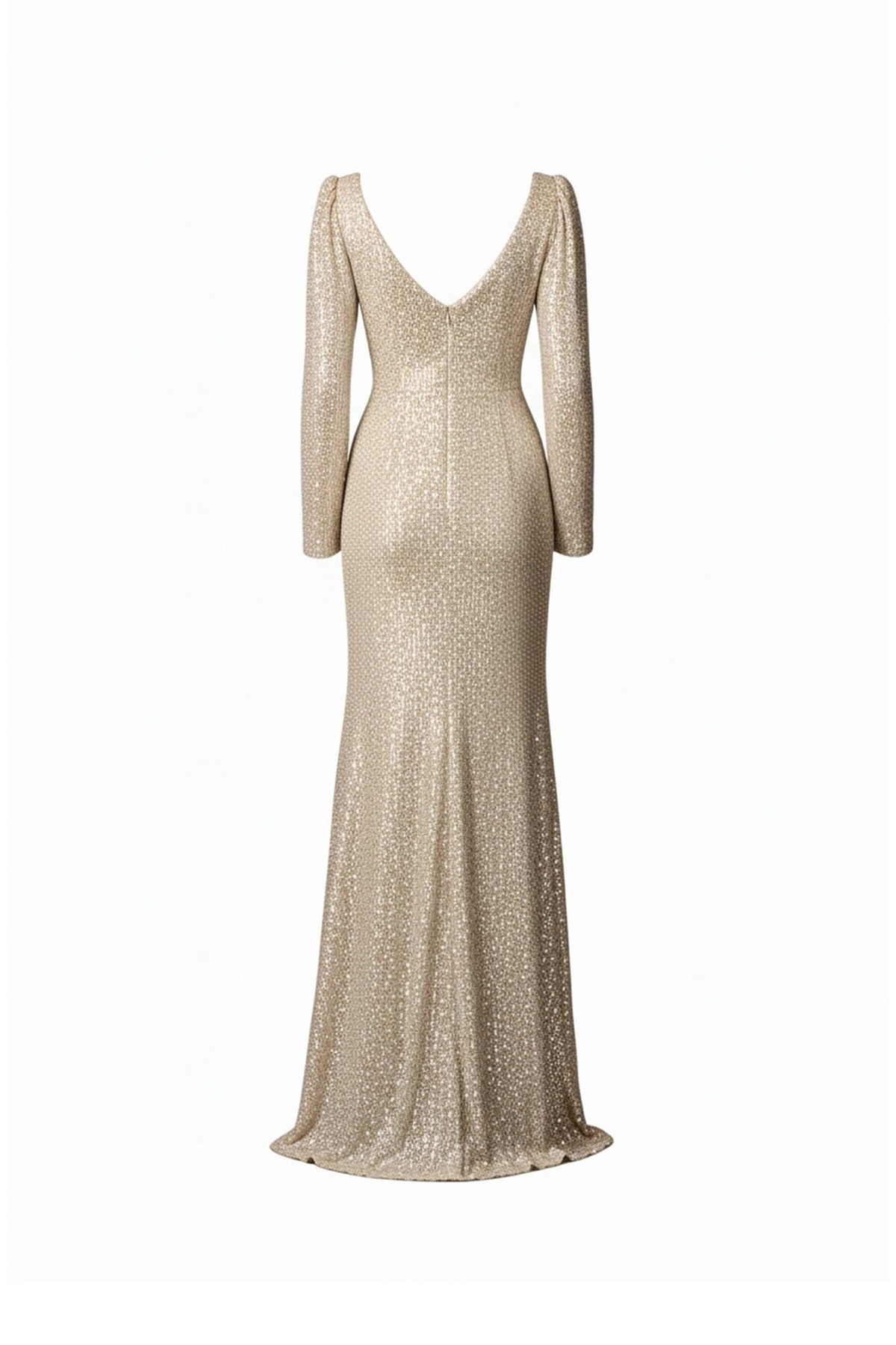 Este vestido largo en tono dorado rosado es la definición de glamour y sofisticación. Cubierto íntegramente con lentejuelas brillantes, crea un efecto de luz cautivador en cada movimiento. Su escote en V y el corte entallado estilizan la silueta, mientras que las mangas largas añaden elegancia y equilibrio al diseño. La abertura lateral en la falda aporta un toque sensual y moderno, ideal para destacar en galas, alfombras rojas o eventos nocturnos. Confeccionado con materiales de alta calidad y un ajuste impecable, es una pieza perfecta para boutiques que buscan ofrecer moda de lujo con alto impacto visual.