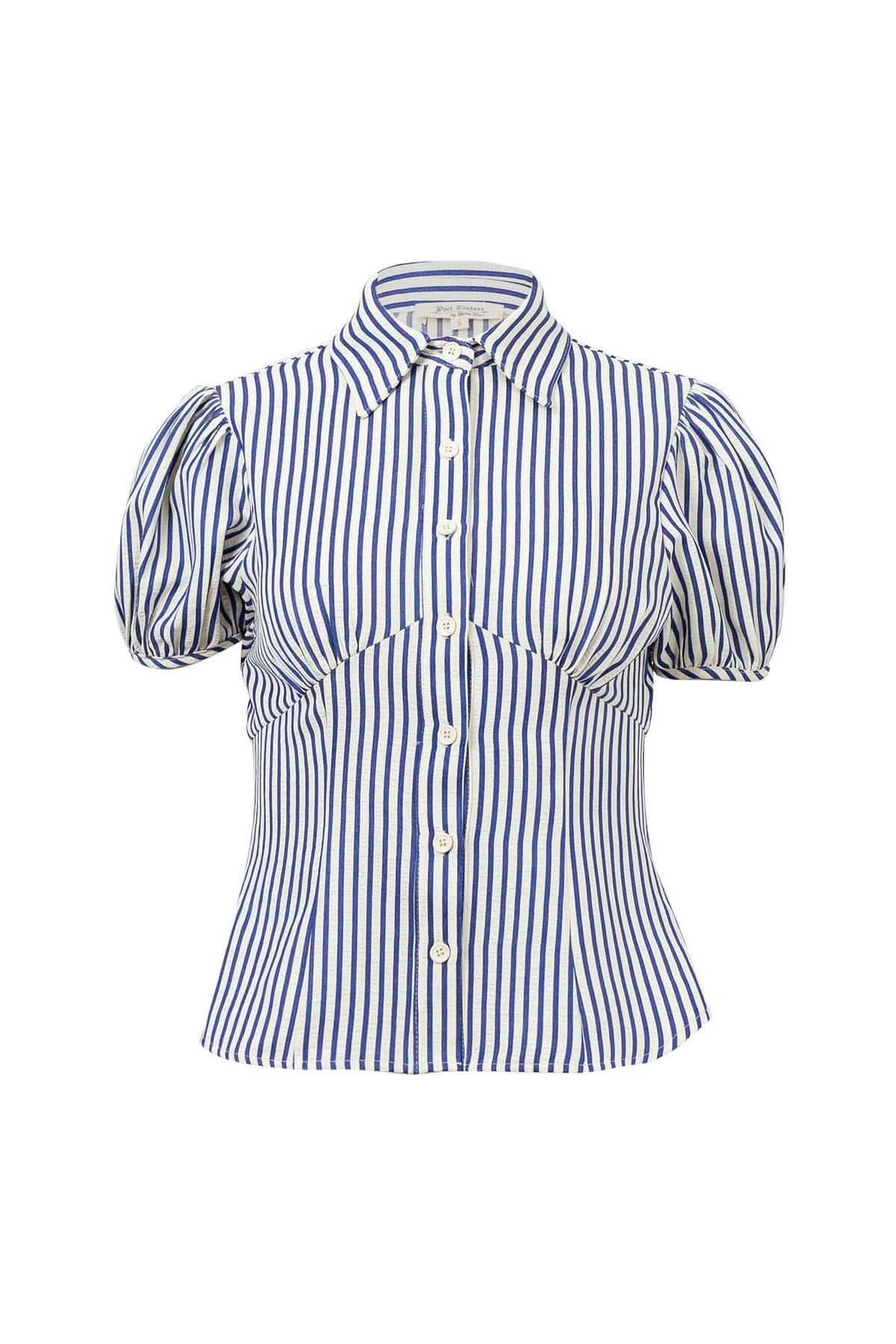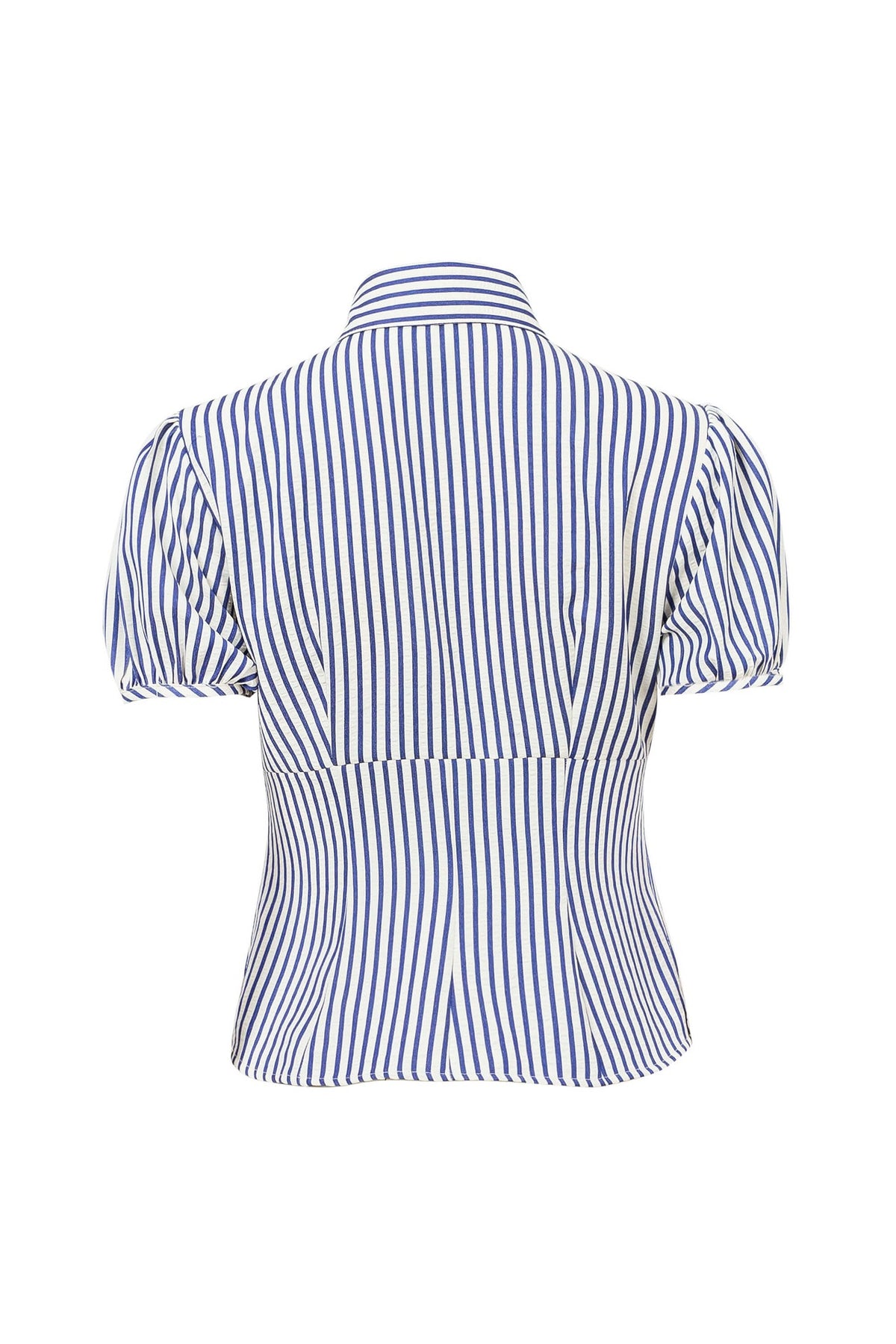 Esta blusa femenina de manga corta destaca por su diseño estructurado y su silueta cuidadosamente entallada, pensada para realzar la figura con elegancia y sutileza. El corte bajo el busto define la cintura de manera natural, mientras que las mangas abullonadas aportan un equilibrio visual sofisticado y femenino.