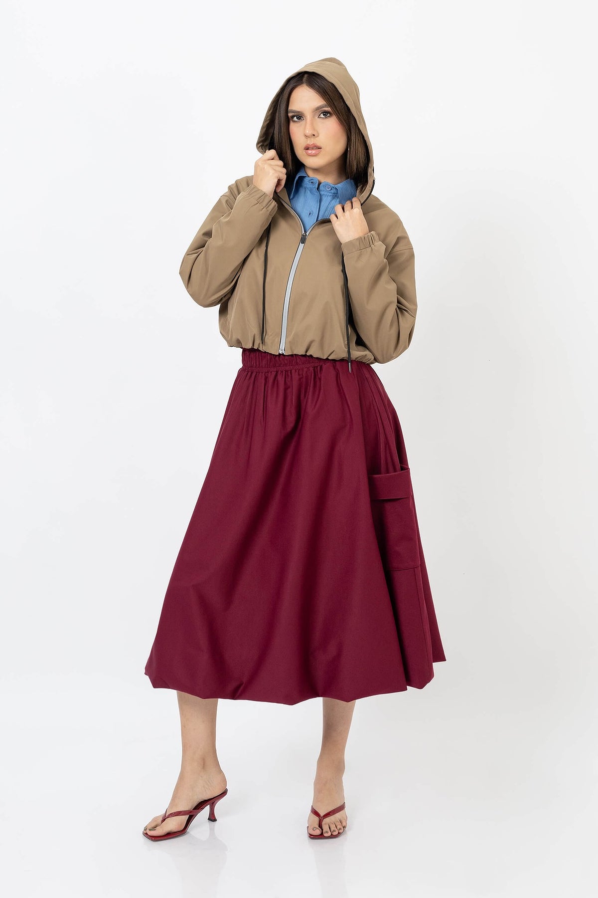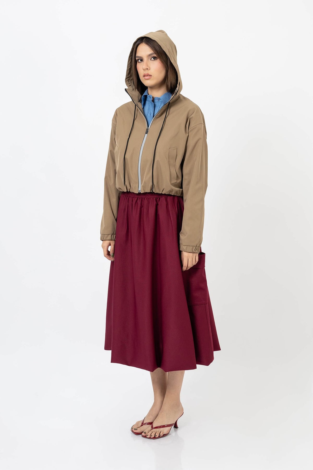 Esta chamarra ligera con capucha es una pieza diseñada para mujeres que buscan elegancia práctica sin sacrificar sofisticación. Su silueta moderna equilibra comodidad y estructura, convirtiéndola en un complemento ideal para looks urbanos, de viaje o de transición entre temporadas. El diseño incorpora una capucha funcional, cierre frontal y detalles de confección pulidos que realzan su carácter contemporáneo.