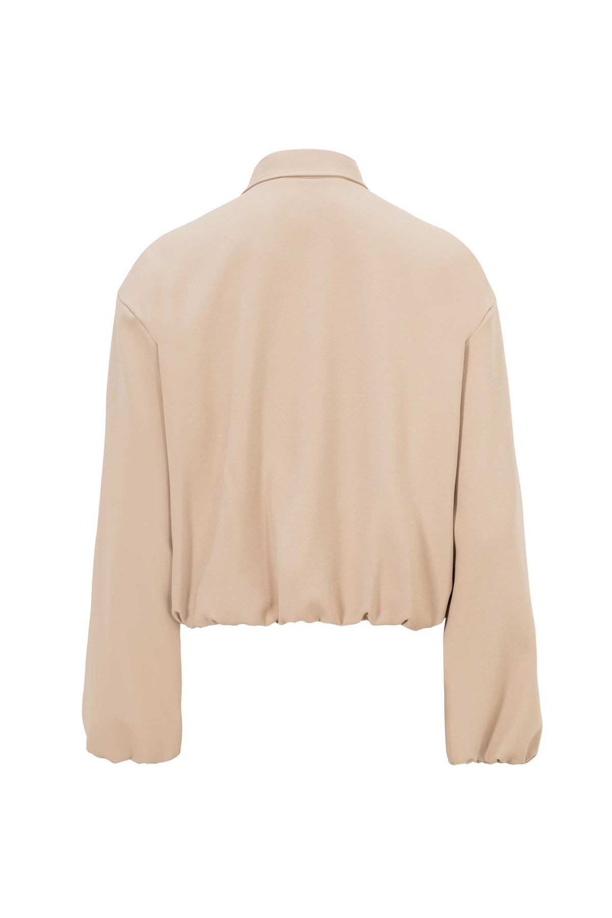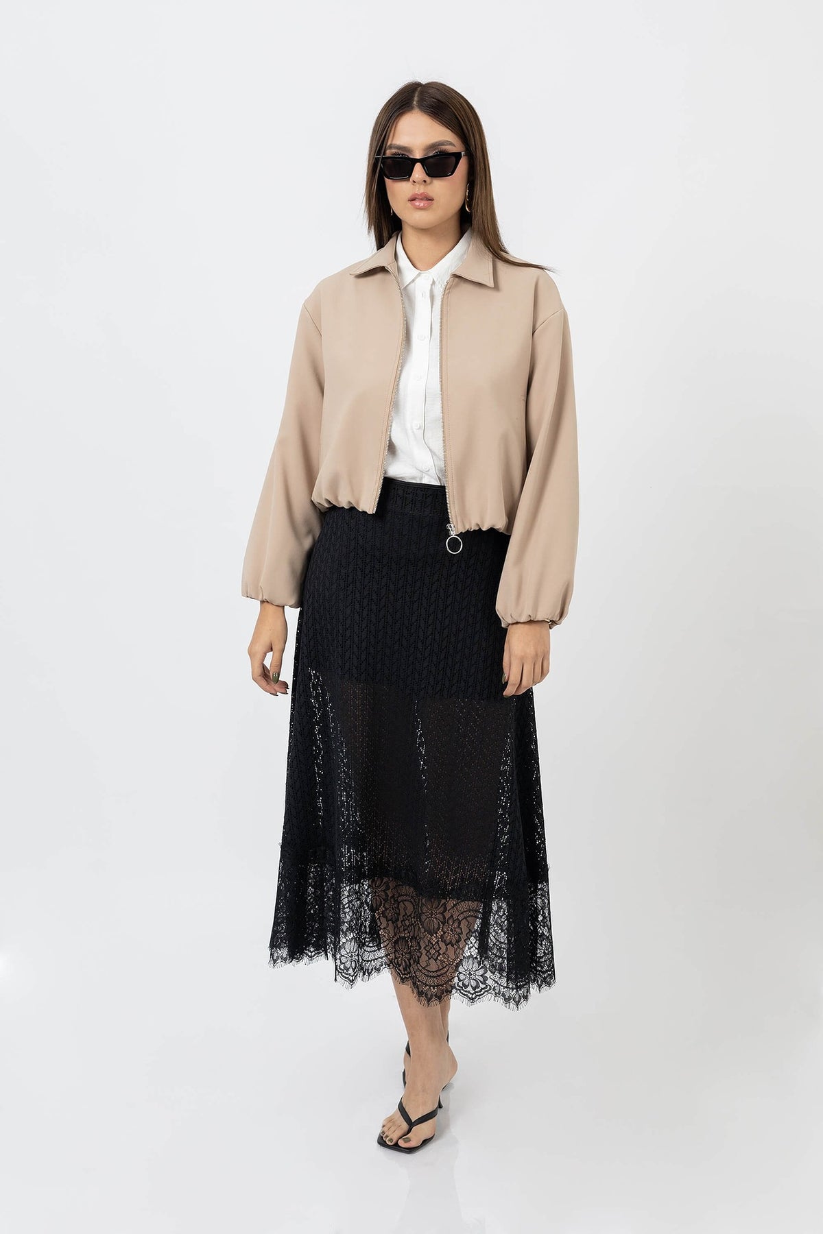 Una chamarra contemporánea diseñada para mujeres que buscan elegancia funcional y un toque moderno en su día a día. Su silueta corta realza la figura y ofrece una reinterpretación sofisticada del “outerwear” clásico, integrando cierres decorativos y líneas marcadas que aportan carácter y vanguardia.