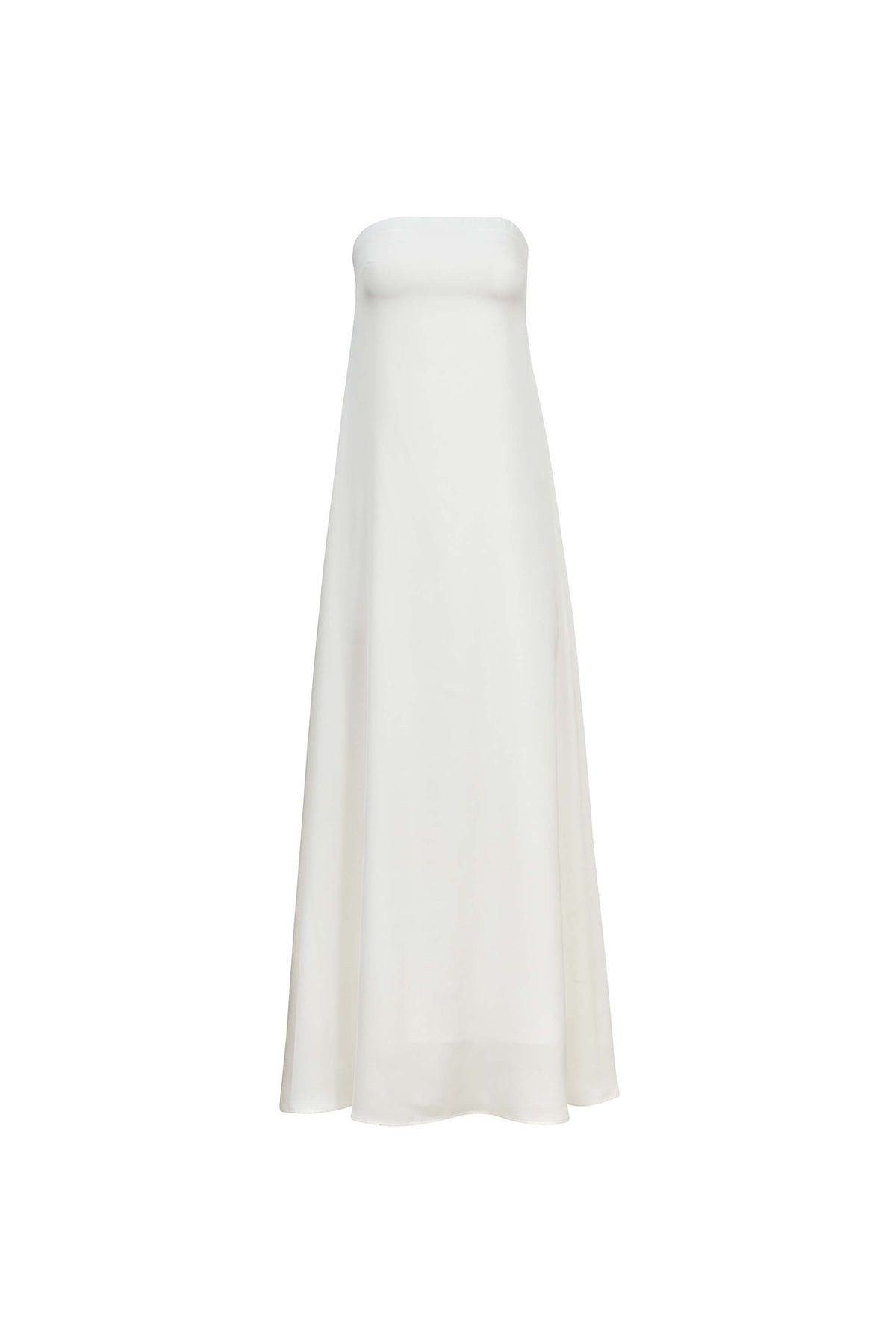 Este vestido es la definición del minimalismo de alto impacto. Su diseño strapless (palabra de honor) presenta un escote recto y una estructura entallada en el torso que fluye magistralmente hacia una falda maxi de gran volumen. La ausencia de mangas y tirantes resalta los hombros y el cuello, aportando una elegancia limpia y atemporal. El vibrante color, combinado con el movimiento fluido de su corte circular, lo convierte en la pieza estelar para galas, eventos de etiqueta y celebraciones nocturnas donde la sofisticación reside en la simplicidad del diseño.