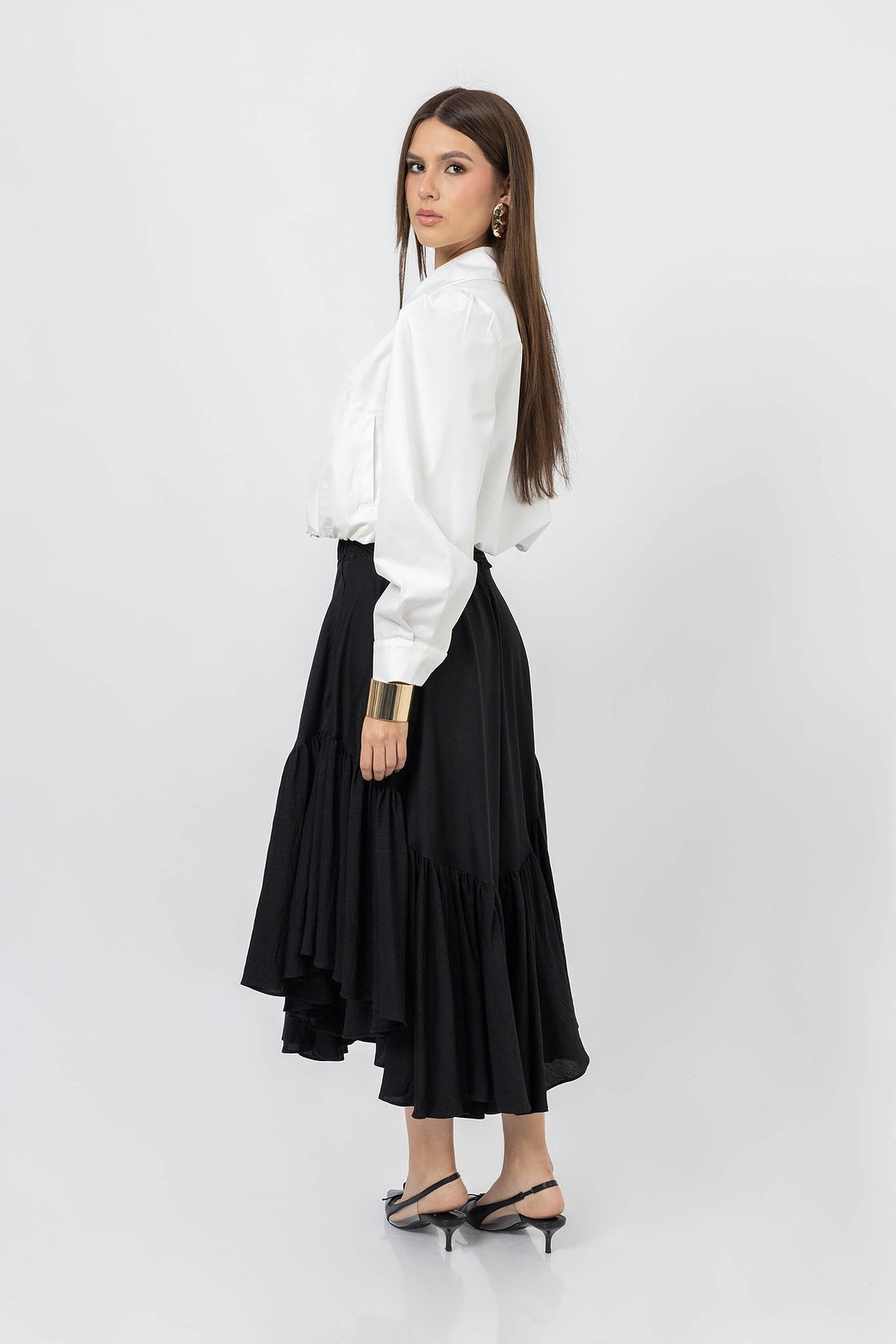 Esta chamarra corta destaca por su silueta elegante y su diseño estructurado, pensado para mujeres que buscan proyectar seguridad, buen gusto y un sentido auténtico de sofisticación. El corte recto enmarcado con pinzas sutiles aporta una caída impecable, mientras el cierre frontal con botones añade un toque clásico reinterpretado en clave moderna.