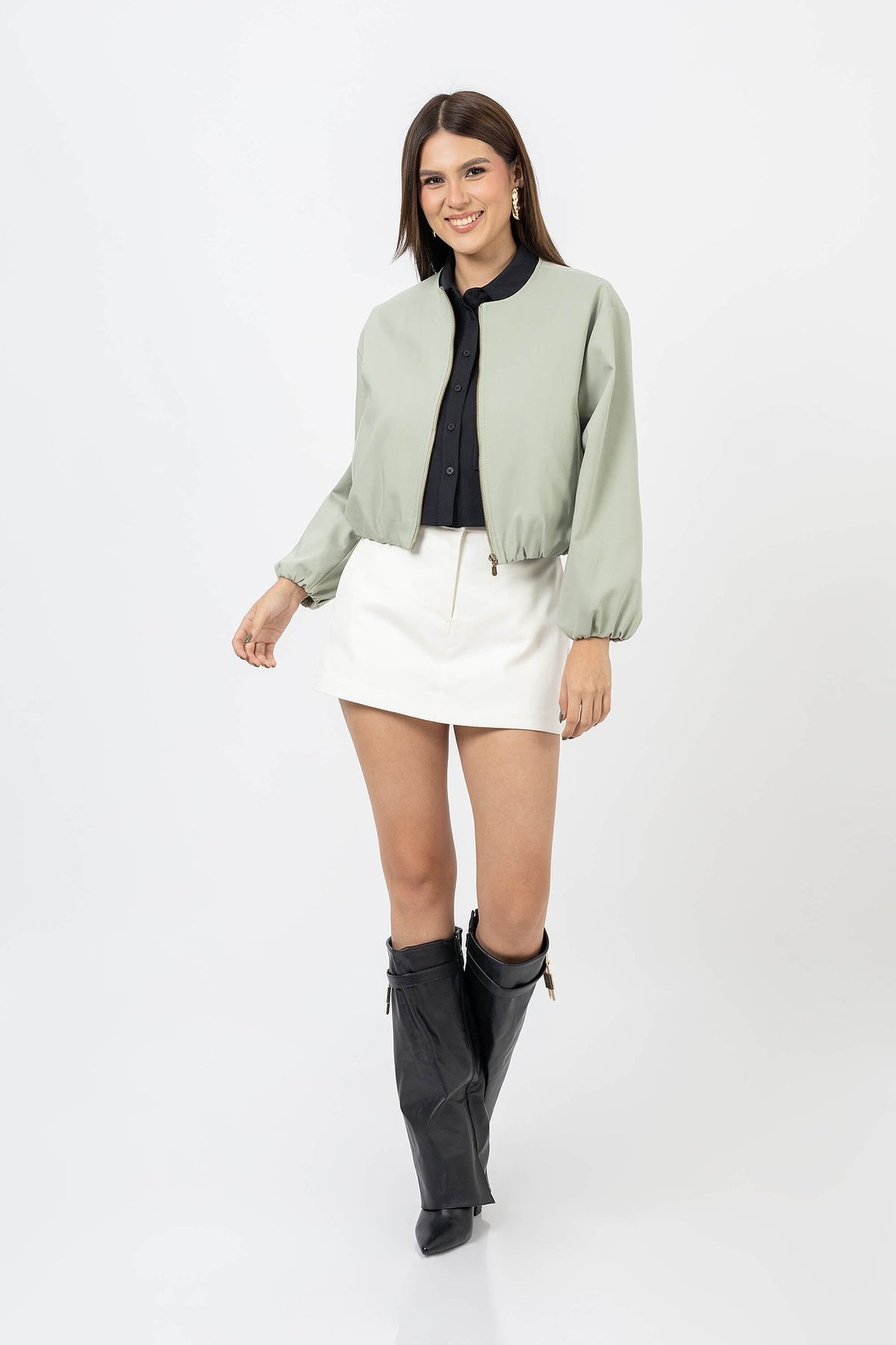 Esta chamarra es una pieza esencial para la mujer que busca proyectar una presencia segura, moderna y sofisticada. Su diseño limpio y estructurado realza la silueta de manera sutil, brindando un equilibrio perfecto entre comodidad y elegancia. El cierre frontal aporta practicidad sin perder ese toque de lujo contemporáneo que distingue a la marca, mientras que los puños suaves ayudan a crear un volumen delicado y femenino.